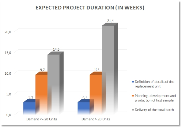 For the specification of the unit details, customers are expecting about 3 weeks. Until production of a first sample, another 6-7 weeks are added. For the entire project duration, customers anticipating a period of about 3-4 months for up to 20 units and about 5 months for quantities that go beyond that. From our point of view, this is quite realistic. However, from our experience, the necessary, internal coordination within the client's organisation is often longer than originally expected.